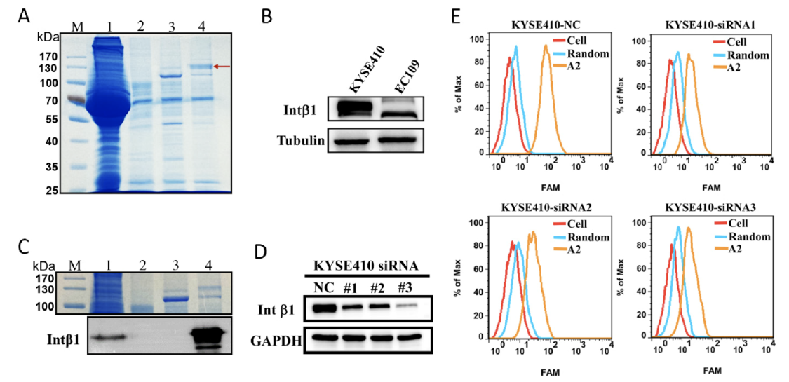 (2)经鉴定核酸适配体A2与靶细胞结合的主靶标为整合素β1,具备作为食管鳞癌标志物和治疗靶点的潜力;