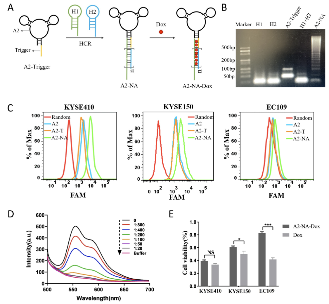 3、设计A2连接的DNA纳米结构,实现化疗药物Dox的靶向递送