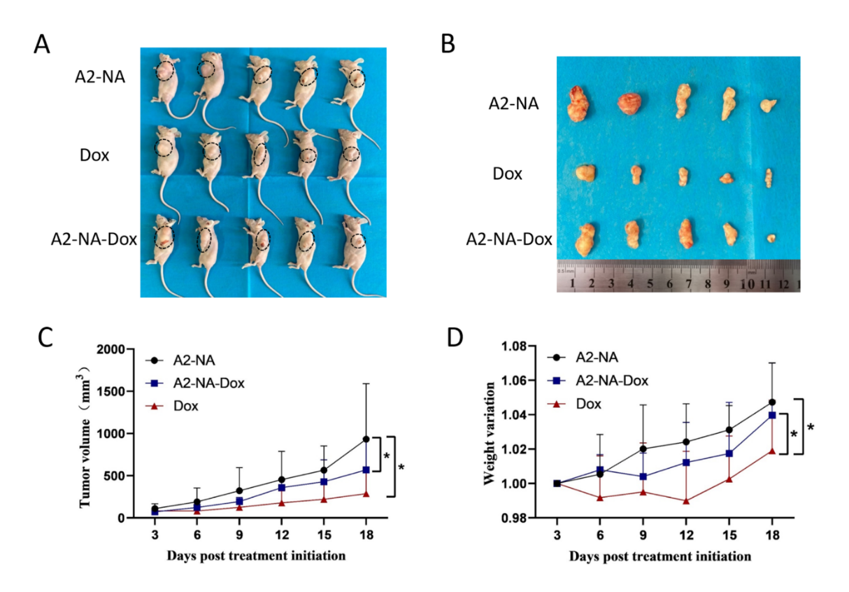 (3)以核酸适配体A2为靶向分子设计并构建了A2-NA纳米结构,该纳米结构能够负载高浓度的Dox并将其特异性递送至靶细胞,实现肿瘤的靶向治疗。