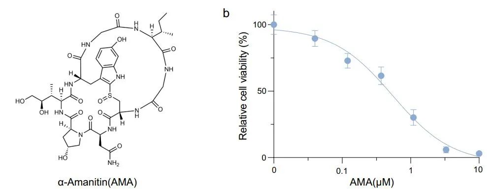 在这类剧毒蘑菇产生的毒素中,毒性最强的成分叫“α-鹅膏蕈碱”(α-Amanitin,简称AMA),主要造成肝急性衰竭,这也是导致中毒者死亡的重要原因。然而,由于在分子机制上不清楚AMA如何导致细胞毒性,一直以来没有明确的解毒剂。