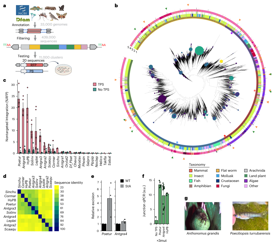 为解决基因插入工具靶向性局限和活性不足的问题,研究人员通过真核生物转座子挖掘与蛋白质语言模型(pLLM)优化,发现了高活性PiggyBac转座酶变体,并验证其在T细胞工程和Cas9导向整合中的适用性,为基因治疗与合成生物学提供了高效新工具。