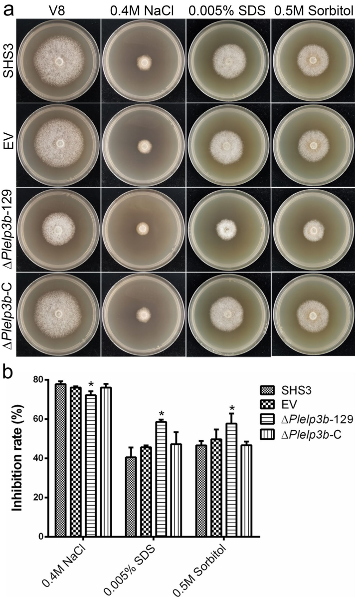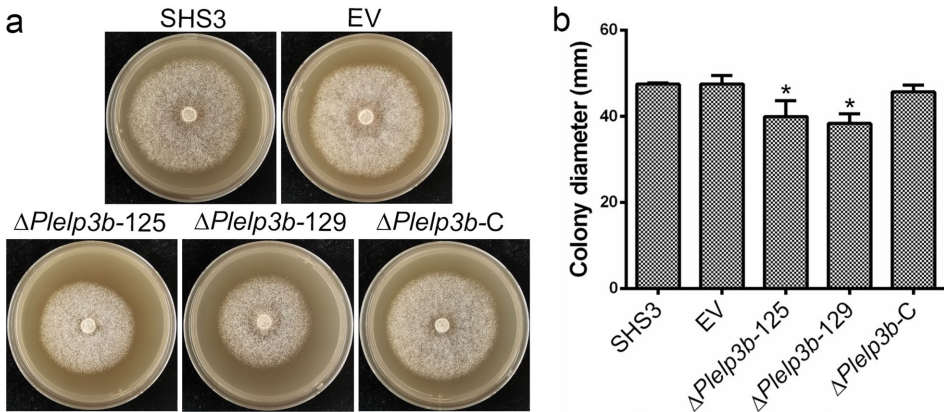 本研究针对由荔枝霜疫霉(Phytophthora litchii)引起的荔枝霜疫病防治难题,通过CRISPR/Cas9基因编辑技术敲除延伸蛋白复合体催化亚基PlElp3b,系统解析了其在菌丝生长、胁迫响应、有性生殖、自噬稳态及致病性中的关键作用。结果表明,PlElp3b缺失导致菌丝生长减缓、有性孢子(卵孢子)产量显著降低,并增强对SDS和山梨醇的敏感性,但提高对NaCl的耐受性;同时,mCherry-PlAtg8降解实验证实PlElp3b通过非转录途径调控自噬流,且其缺失显著削弱对荔枝果实和叶片的侵染能力。该研究首次在卵菌中揭示了Elp3同源蛋白的生物学功能,为开发靶向Elp3的绿色防控策略提供了理论依据。
