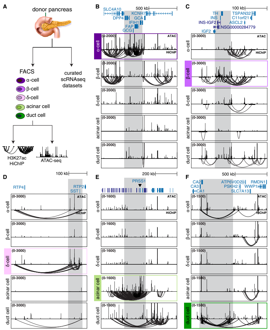 本研究针对胰腺疾病风险相关非编码变异的功能解析难题,通过构建五种原代胰腺细胞的三维增强子-启动子互作图谱,开发了基于图论树模型的机器学习算法EPIC,成功预测并实验验证了关键增强子对细胞特异性基因表达的调控作用。研究发现胰腺癌风险变异在腺泡细胞增强子中显著富集,为疾病机制研究提供了新视角,相关数据模型为胰腺疾病的变异到功能研究提供了重要资源。