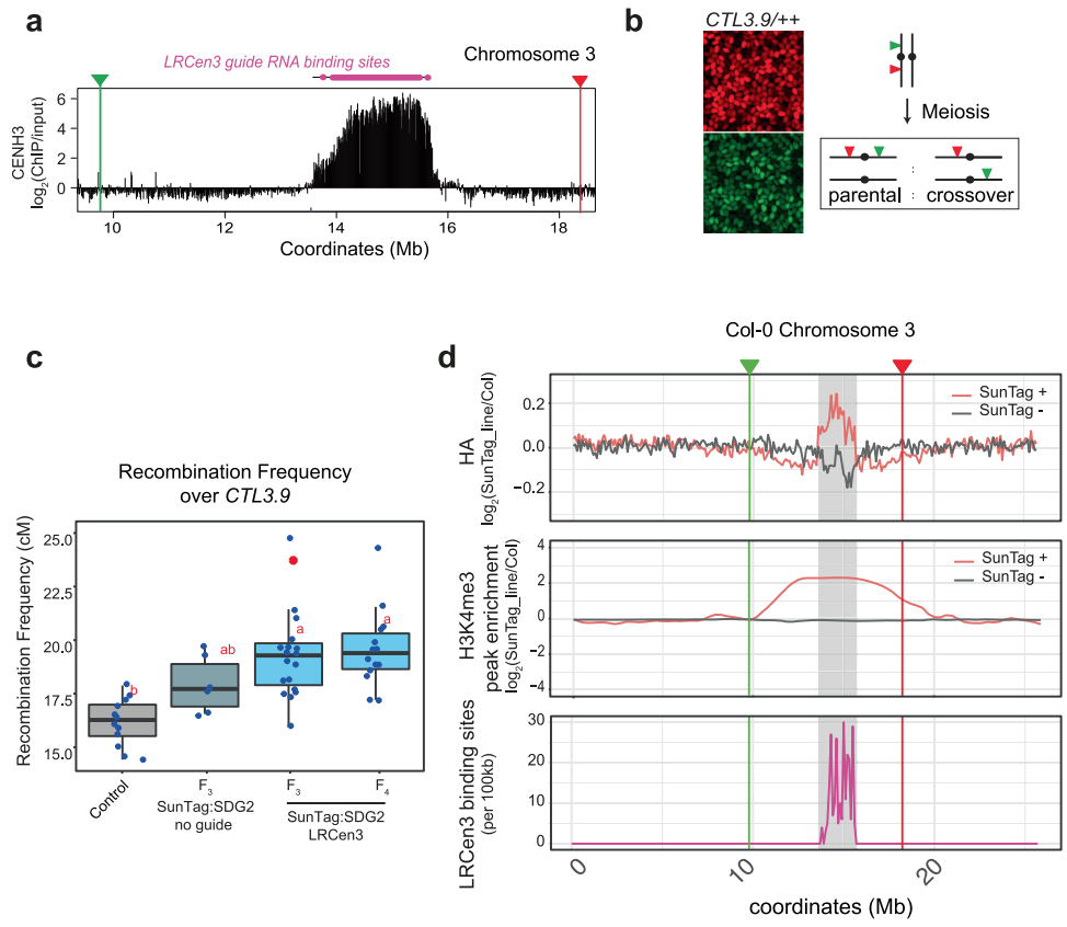 CRISPR靶向H3K4me3表观遗传编辑技术激活基因表达并解锁拟南芥着丝粒近端交叉重组