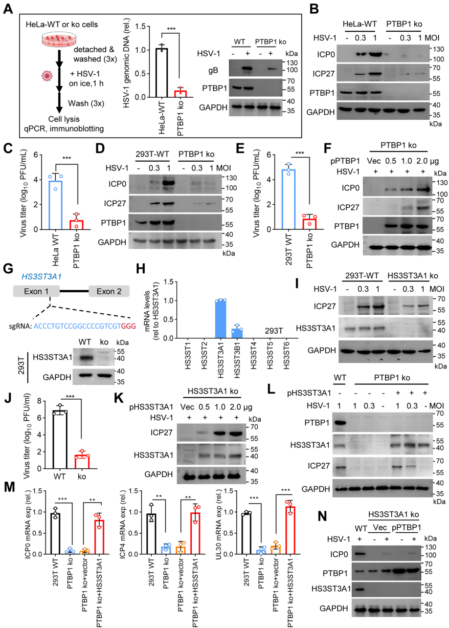 RNA结合蛋白PTBP1通过调控硫酸乙酰肝素3-O-磺基转移酶基因剪接介导HSV-1病毒感染的新机制