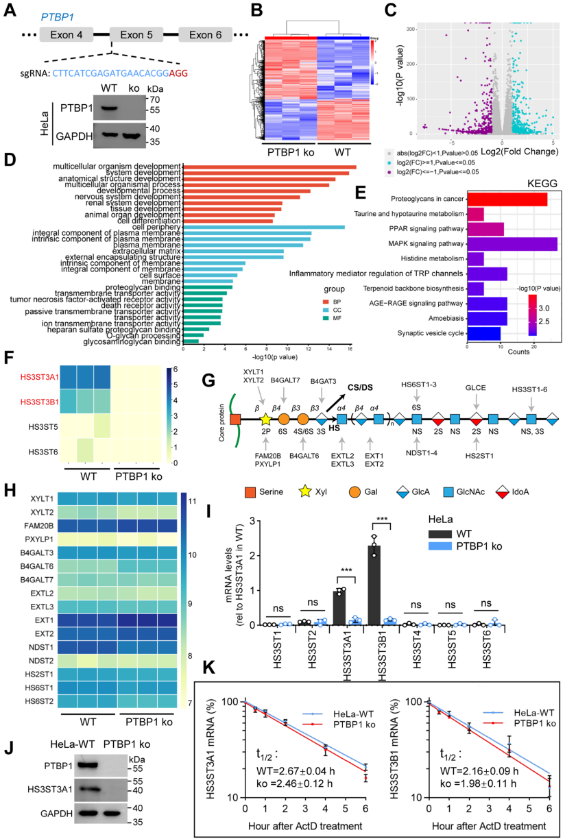 本研究揭示了RNA结合蛋白PTBP1(多聚嘧啶区结合蛋白1)通过调控HS3ST3A1/HS3ST3B1基因前体mRNA剪接,影响硫酸乙酰肝素3-O-磺酸化修饰,进而介导单纯疱疹病毒1型(HSV-1)宿主细胞附着和感染的分子机制。研究人员发现PTBP1基因敲除导致细胞对HSV-1感染产生抵抗,而通过agomiR-124抑制PTBP1表达可显著缓解小鼠疱疹性角膜炎症状,为抗病毒治疗提供了新靶点。
