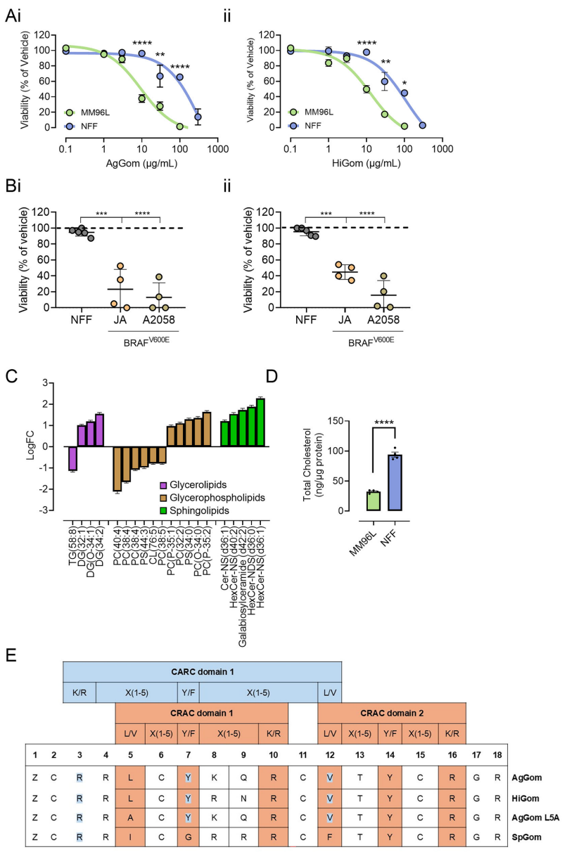 本刊推荐:为克服黑色素瘤BRAFV600E突变患者化疗耐药性问题,研究人员开展蜘蛛源肽Gomesin(AgGom/HiGom)靶向治疗机制研究。通过脂质组学、CRISPR/Cas9筛选及动物实验,首次揭示其通过抑制ST3GAL5基因调控鞘糖脂通路,且胆固醇水平与细胞敏感性呈负相关。该研究为基于脂质代谢的靶向疗法开发提供新方向。