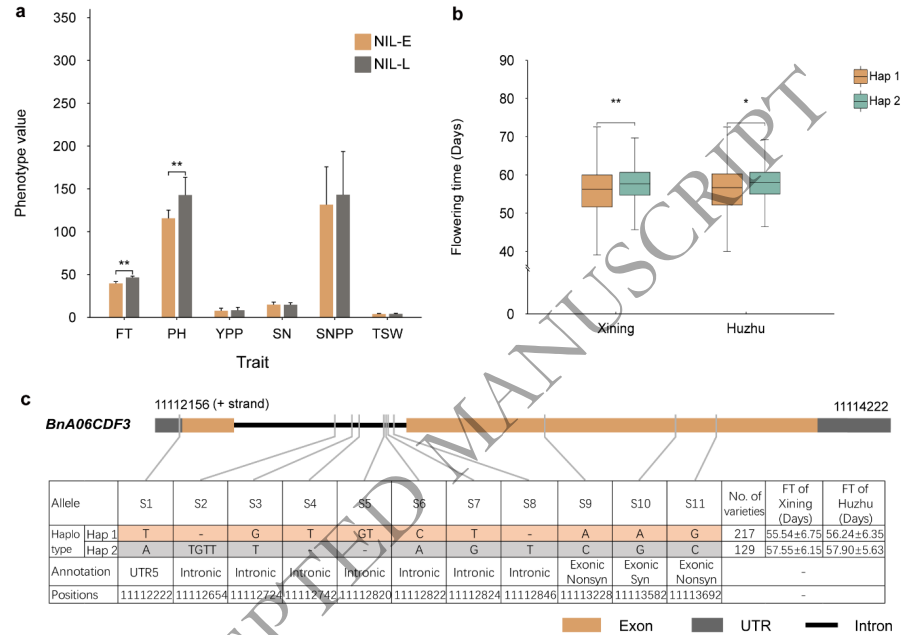 基于图位克隆的功能解析揭示CDF3是调控芸薹属植物开花时间的关键基因