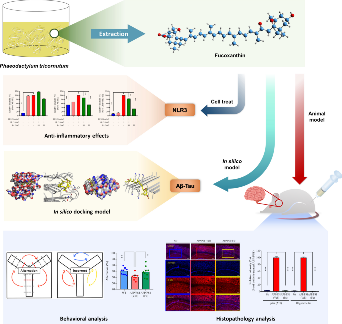 《Molecular Neurobiology》:Fucoxanthin Extracted from the Microalgae Phaeodactylum tricornutum Ameliorates Alzheimer’s Pathologies with the Reduction of Aβ-Induced NLRP3 Inflammasome Activation in APP/PS1 Mice