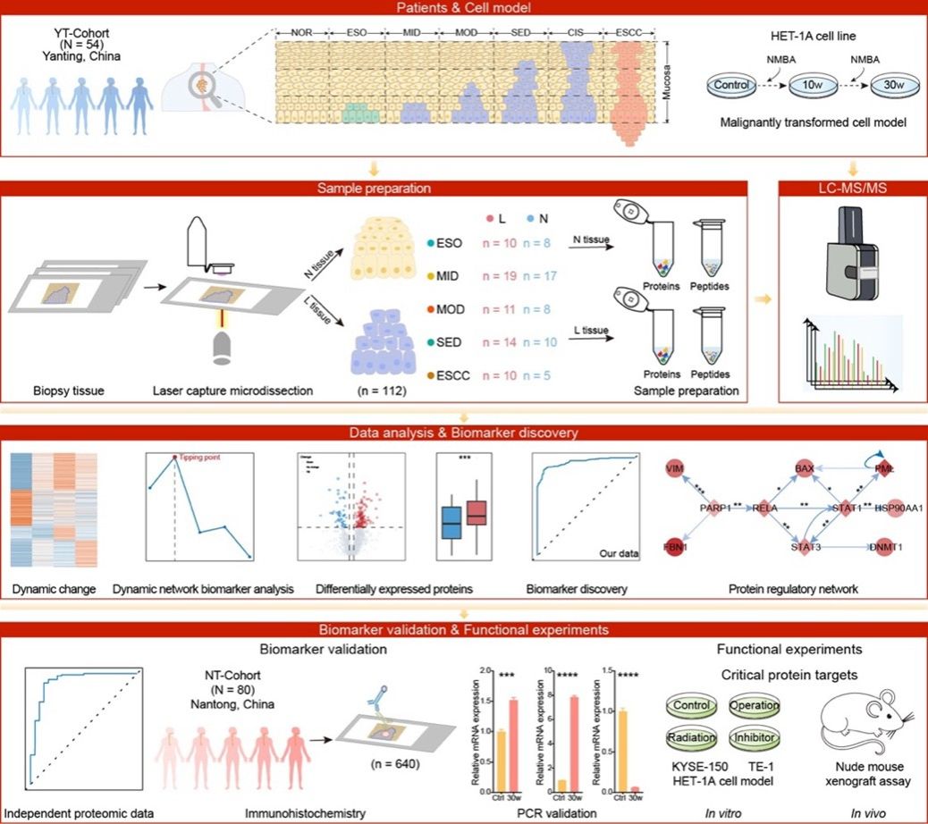 图1. 食管鳞癌发生进展的蛋白质组学图谱与早期预警生物标志物研究