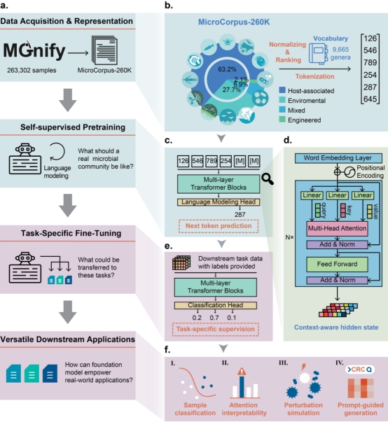 MGM 采用了类似 GPT 的因果语言建模(Causal Language Modeling)策略。研究团队构建了包含 263,302 个样本的 Microcorpus-260K 数据集,涵盖宿主相关、环境、工程等多种生境。