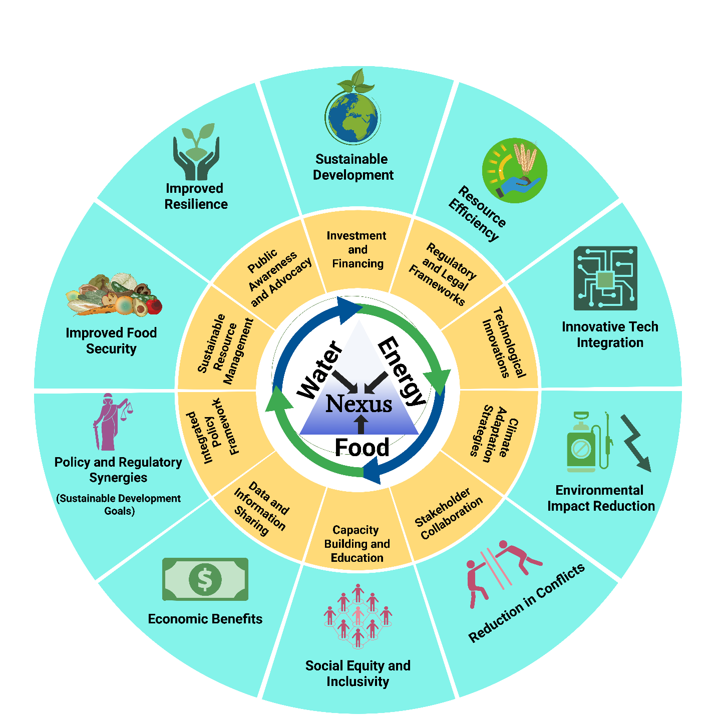 图2:水-能-粮纽带管理框架图:解析可持续农业与粮食安全的关键驱动要素及协同效益