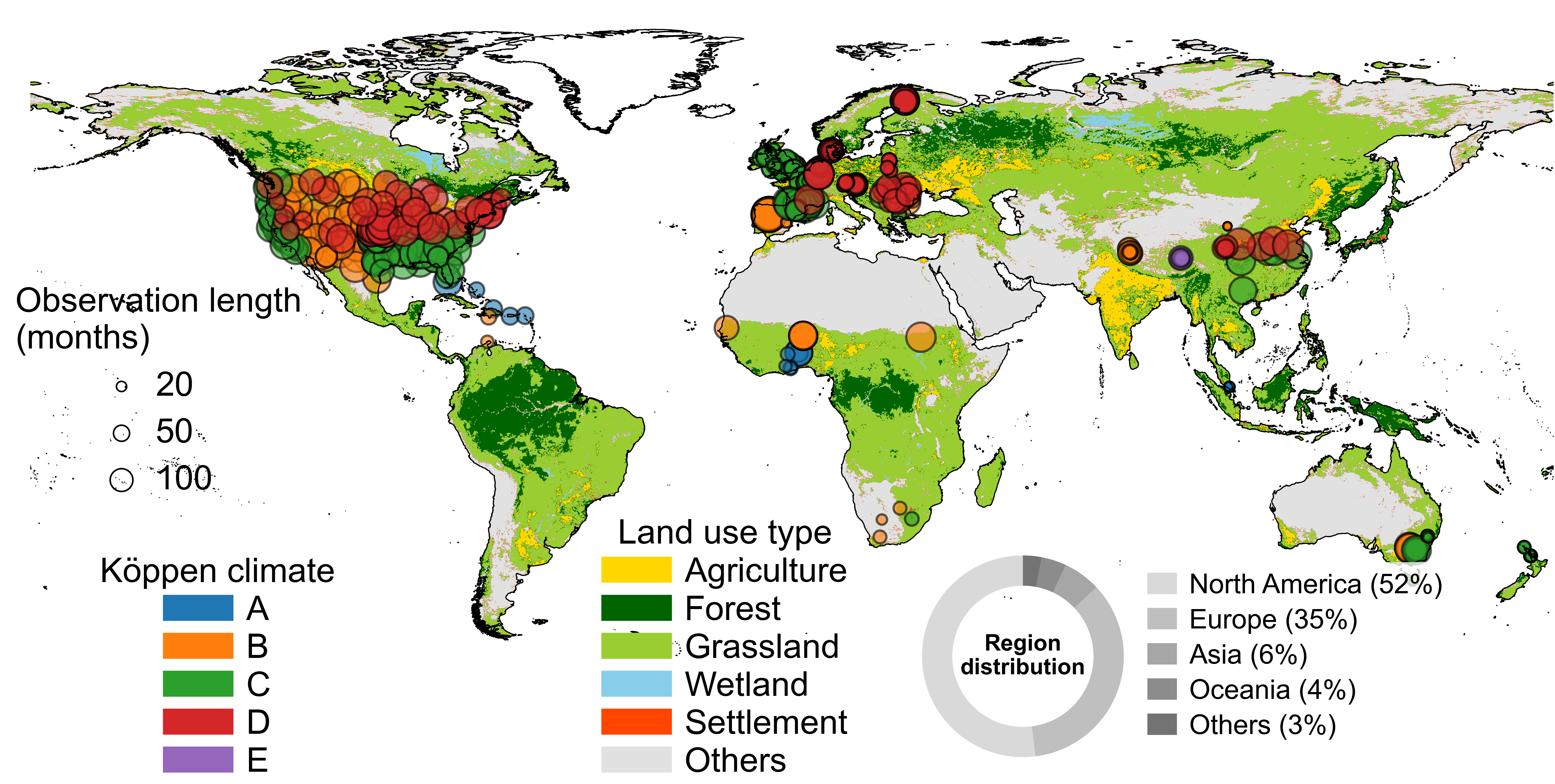 图1:本研究采用的全球992个ISMN地面观测站点空间分布