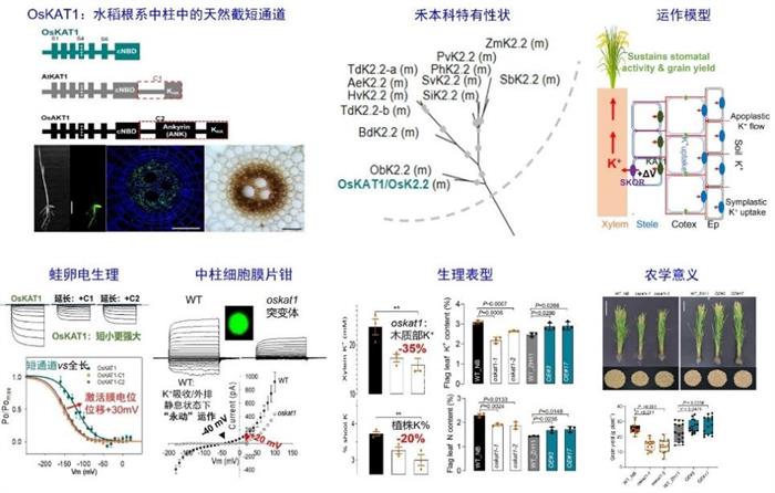 综上所述,OsKAT1的发现揭示了禾本科作物特有的一套旨在实现营养效率最大化的生理适应机制。该研究将植物钾营养研究从“单一元件”视角推向“系统协作”的新层次,同时为未来通过遗传改良同步提升作物钾利用效率与产量潜力,提供了全新的分子靶点与理论基础。这项研究是衔接基础分子机制与重要农艺性状的典范,展现出深入解析物种特异性适应策略对农业科技发展的根本性推动作用。