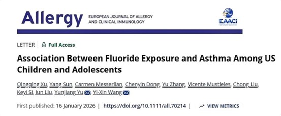 Allergy | 公共卫生学院汪一心团队揭示氟暴露增加儿童、青少年哮喘风险