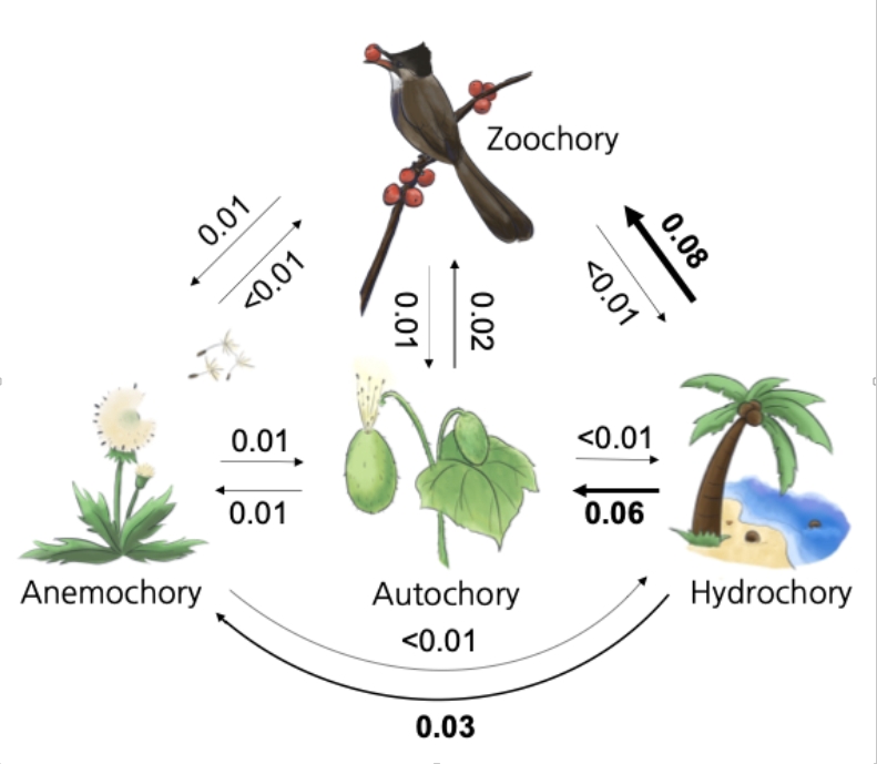 相关研究结果以“Evolutionary history and the global distribution of seed dispersal modes in angiosperms”为题近日发表在国际学术期刊New Phytologist上