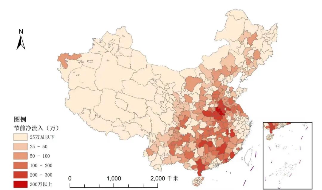 2、除夕前人口流动“流出集聚、流入分散、网络化趋势显著”