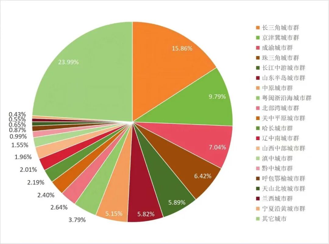 3、前五大城市群合计到发量占全国近半数,成渝城市群进入全国前三
