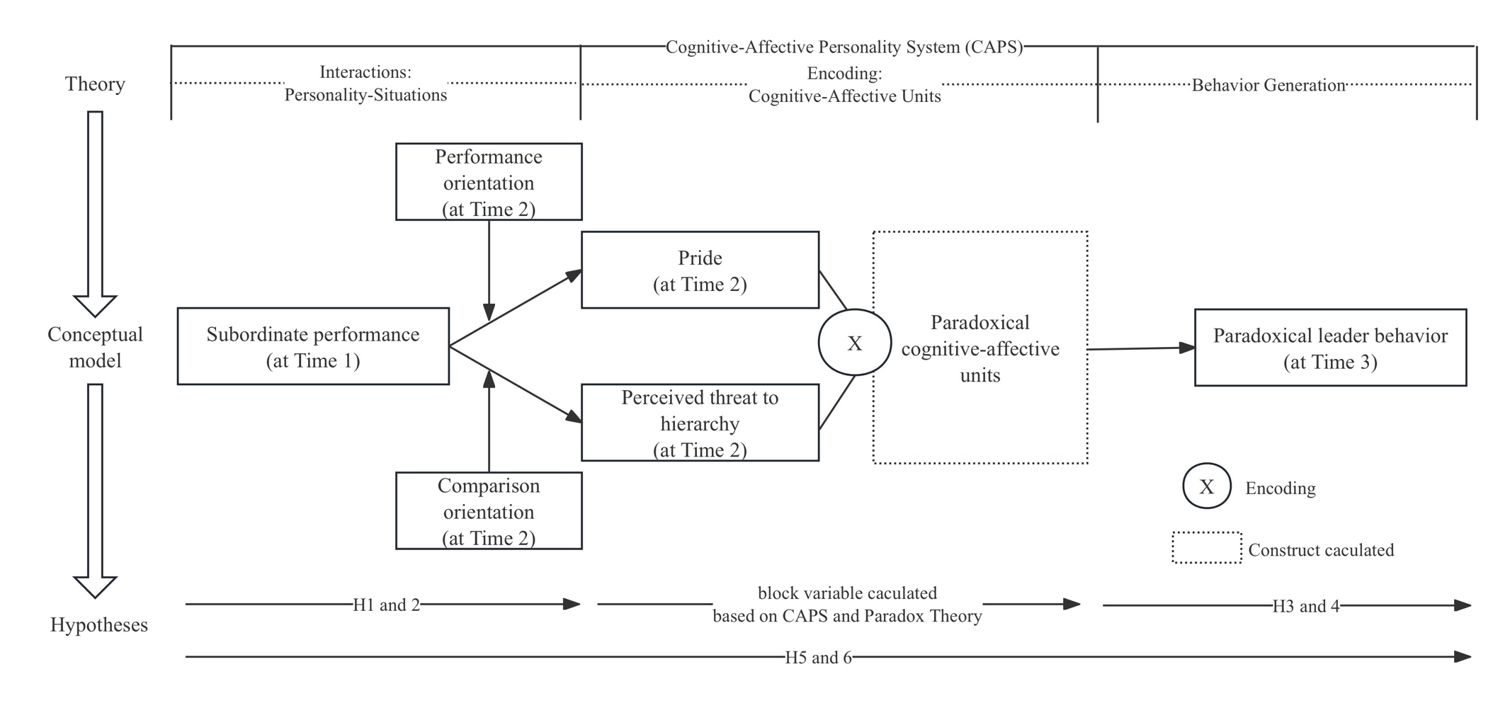 通过两项情景实验以及400对上下级配对的实地调研数据,研究首次揭示了下属的高绩效表现如何自下而上地影响领导者行为,并验证了其中的认知-情感双系统机制以及领导者个人特征的调节作用。研究模型图一所示: