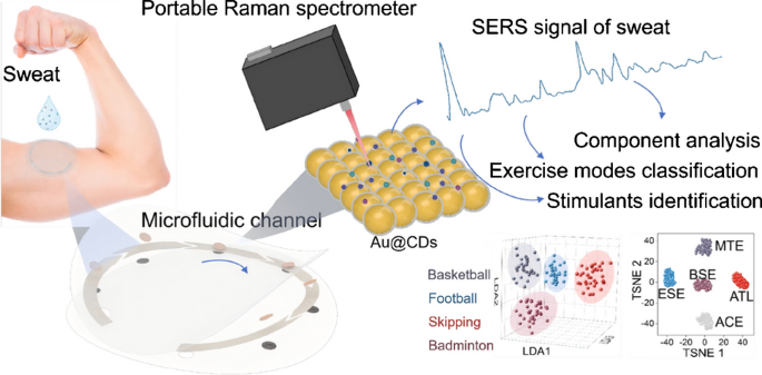 基于机器学习的可穿戴SERS微流控系统,用于快速检测汗液中的生物标志物和兴奋剂