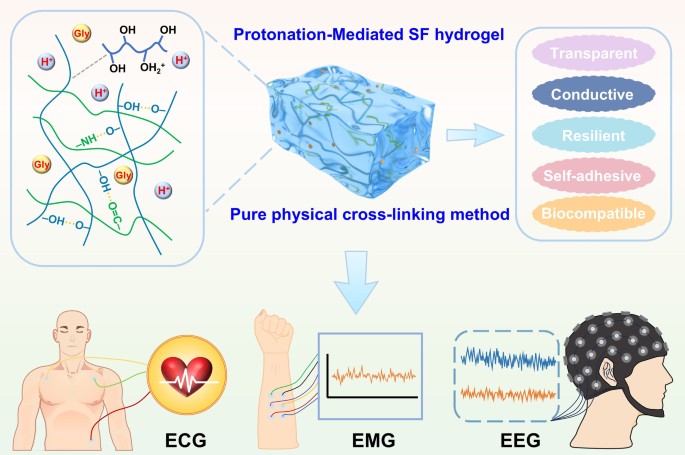 质子化介导的多功能丝素水凝胶粘合剂,用于表皮界面传感