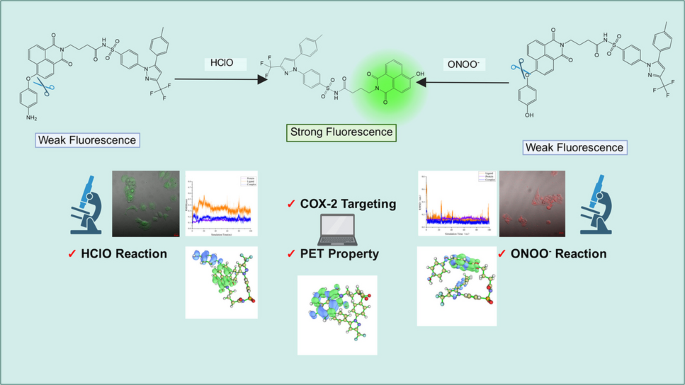 开发针对COX-2的荧光探针,用于检测癌细胞中的HClO/ONOO?:一项综合的实验与计算研究