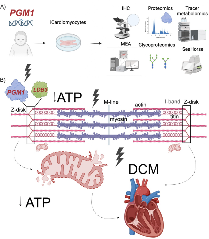 我们的数据表明PGM1是心肌细胞功能的关键调节因子,它将肌节Z盘的完整性与线粒体代谢联系起来。这些机制见解为开发针对PGM1-CDG及其他涉及Z盘功能障碍的心肌病的靶向疗法奠定了基础。
