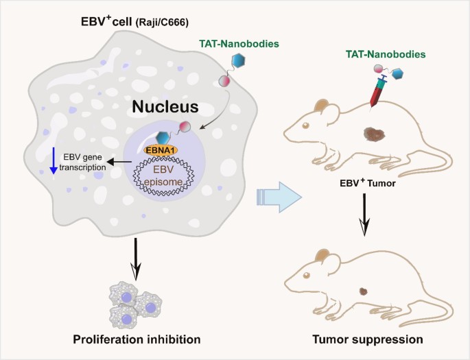 本研究不仅建立了一种针对病毒致癌蛋白的稳健筛选方法,还强调了针对EBNA1-DBD的纳米抗体在治疗EBV相关癌症方面的治疗潜力。