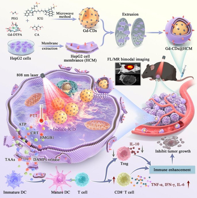 细胞膜包裹的钆掺杂碳纳米点,用于高效的光热和免疫协同治疗肝细胞癌