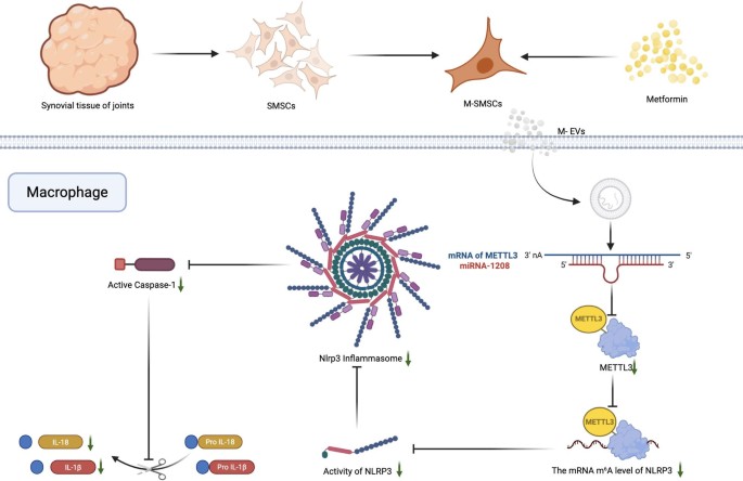 《Journal of Nanobiotechnology》:Metformin-pretreated synovial mesenchymal stem cell-derived exosomes alleviate osteoarthritis via the miR-1208/METTL3/NLRP3 axis
