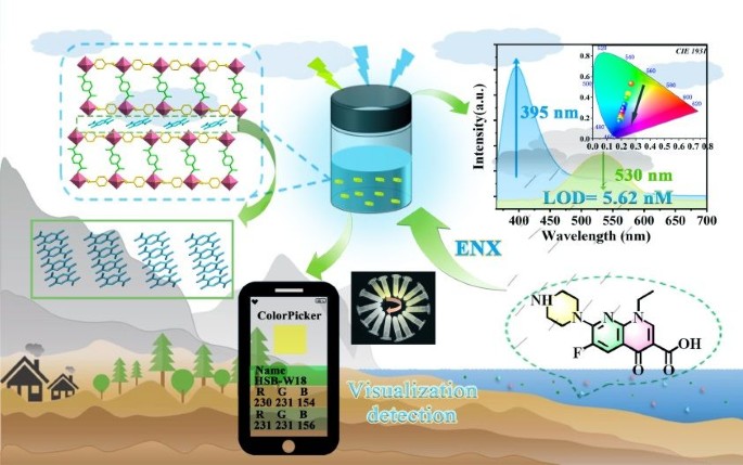 通过插层工程设计的金属有机框架(MOF),实现对依诺沙星(enoxacin)的超灵敏比率荧光检测