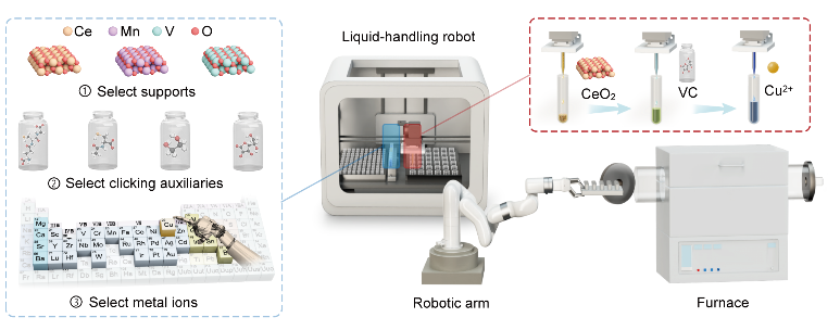 图1 机器人驱动的面向热催化的单原子催化剂合成路线示意图