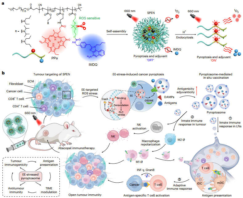 2026年3月3日,药学院天然药物及仿生药物全国重点实验室汪贻广教授、张强院士、陈斌龙副研究员团队在《自然·材料学》(Nature Materials)上发表了题为“In situ-generated vaccine-like pyroptosome for personalized cancer immunotherapy”的研究工作。