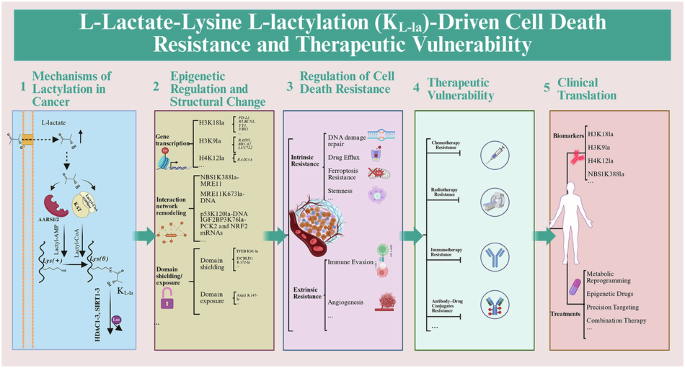 综述:乳酰化作为癌症中的代谢-表观遗传调控机制:在细胞死亡抵抗和治疗敏感性方面发挥双重作用