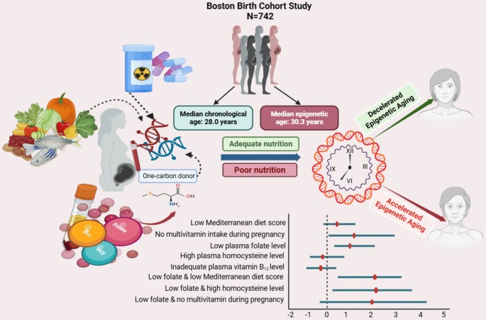 《GeroScience》:Independent and combined associations of maternal one-carbon nutrition biomarkers and dietary patterns with epigenetic age acceleration: Evidence from the Boston Birth Cohort