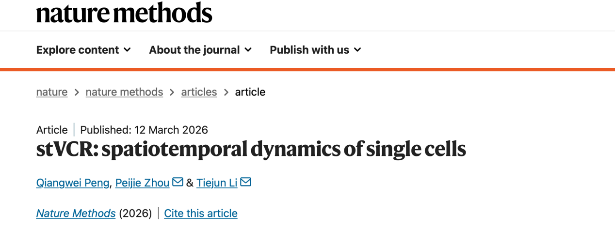 近日,北京大学数学科学学院李铁军教授团队与北京大学国际机器学习中心周沛劼研究员团队在Nature Methods期刊上发表了题为stVCR: Spatiotemporal dynamics of single cells的研究论文。该研究开发了一个名为stVCR (spatio-temporal Video Cassette Recorder) 的生成式深度学习模...