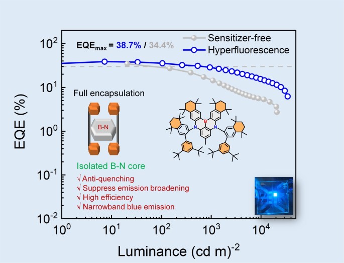 《Science China-Materials》:Steric encapsulation of multi-resonance TADF emitters enabling narrowband deep-blue OLEDs with high efficiency and high brightness at elevated doping levels
