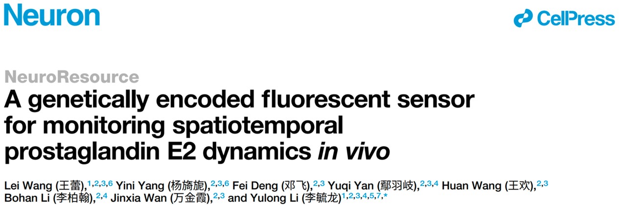 2026年3月13日,北京大学生命科学学院李毓龙教授团队在Neuron杂志上发表了题为“A genetically encoded fluorescent sensor for monitoring spatiotemporal prostaglandin E2 dynamics in vivo ”的研究论文。该研究成功开发了首个用于检测前列腺素E2(PGE2)的遗传编码荧光探针GRABPGE2-1.0,并借助大视场成像技术,首次观察到了PGE2在炎症状态与癫痫发作时“一慢一快”的响应,深入揭示了大脑在这两种不同病理条件下PGE2释放的时空动态差异。李毓龙实验室长期致力于发展神经递质和神经调质荧光探针,这也是该团队继成功开发单胺类、胆碱类、嘌呤类、神经肽及内源性大麻素探针后,在脂质信号分子检测技术领域取得的又一重要突破。