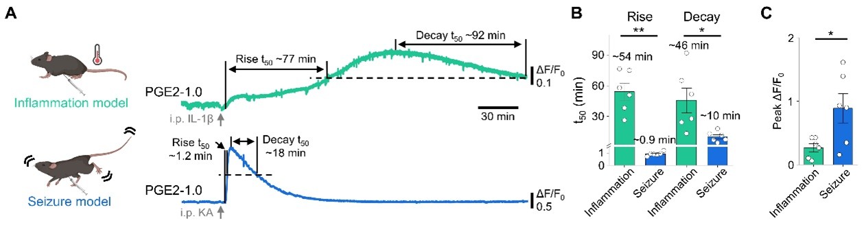 生命科学学院李毓龙实验室开发新型荧光探针,解码前列腺素E2在炎症与癫痫状态下的时空动态差异