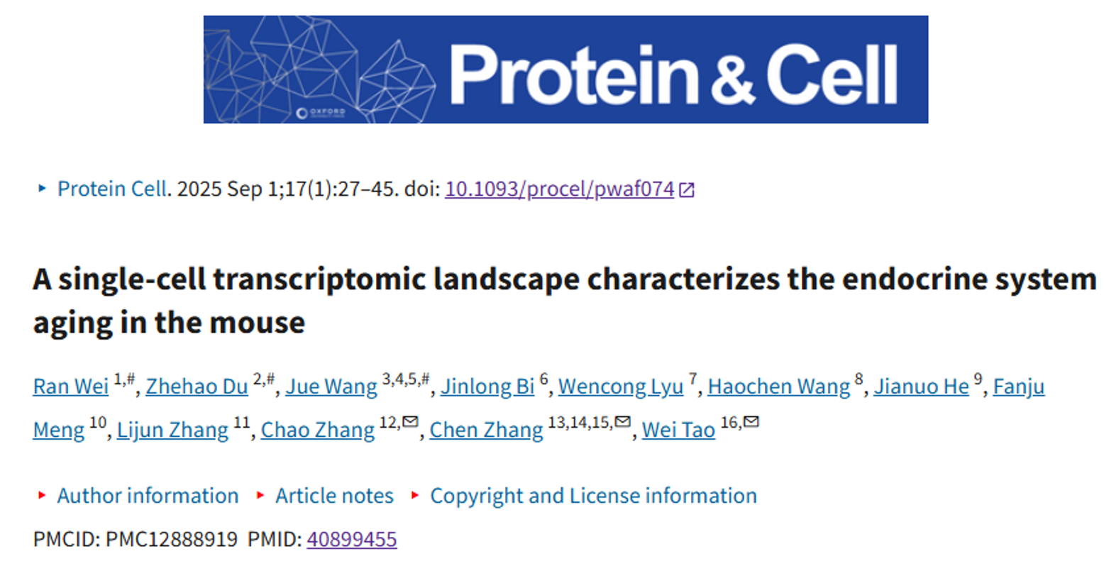 近期,北京大学生命科学学院陶伟教授团队围绕衰老发生机制及其干预策略开展了系统研究,并取得一系列重要进展。相关成果分别发表于Protein&Cell、eLife和Life Medicine,这些研究从内分泌系统衰老图谱构建、药物干预策略以及体液环境调控三个不同层面系统解析了衰老的分子机制,为理解机体衰老及开发潜在抗衰老干预手段提供了新的科学依据。