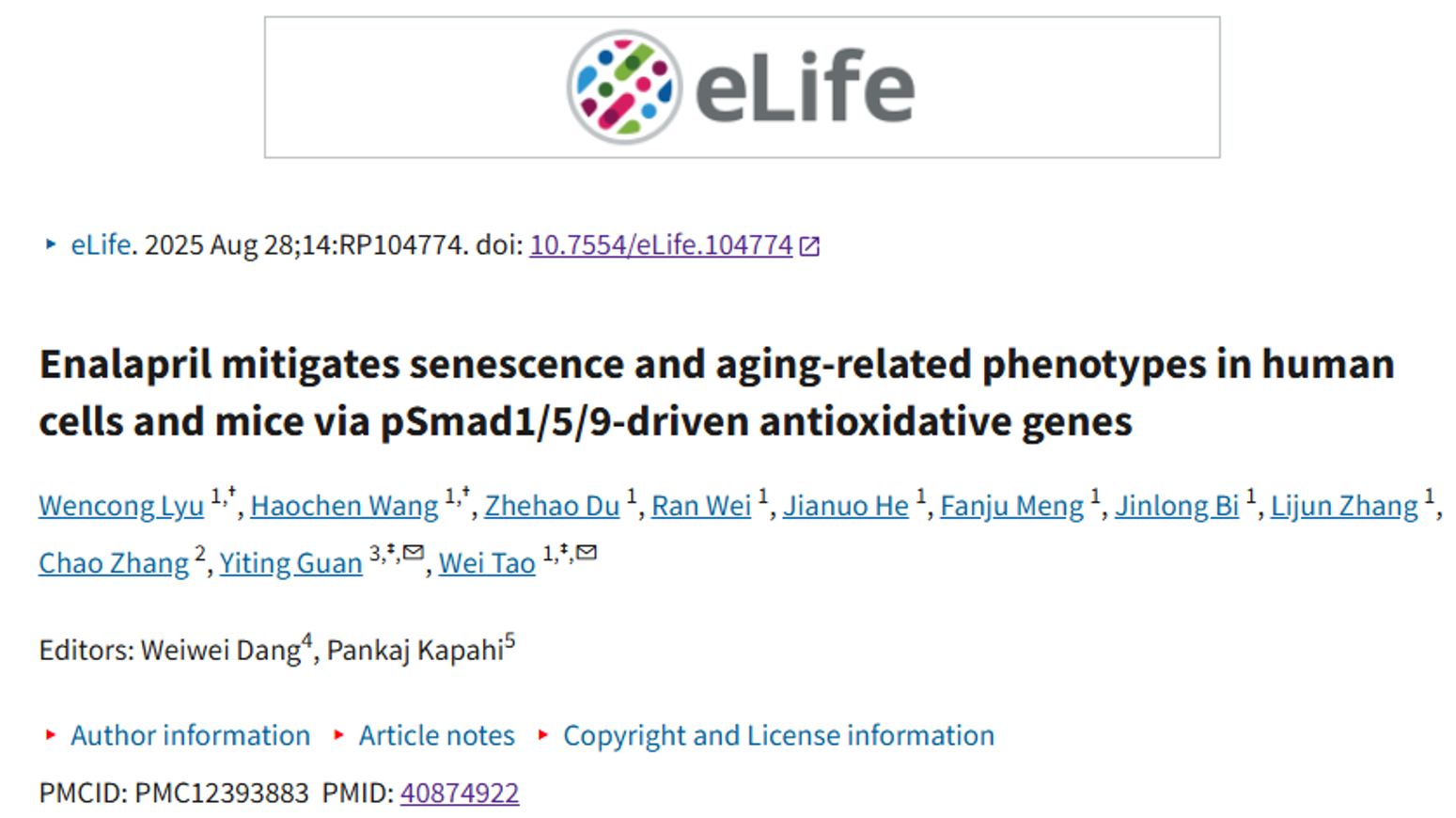 在Protein&Cell发表的论文“A single-cell transcriptomic landscape characterizes the endocrine system aging in the mouse”中,北京大学生命科学学院魏然、杜哲豪为共同第一作者,中国科学院昆明动物研究所张超、首都医科大学张晨与陶伟为共同通讯作者。在eLife发表的论文“Enalapril mitigates senescence and aging-related phenotypes in human cells and mice via pSmad1/5/9-driven antioxidative genes”中,北京大学生命科学学院吕汶聪、王浩臣为共同第一作者,广东医科大学附属湛江中心人民医院管仪婷与陶伟为共同通讯作者。在Life Medicine发表的论文“Heterochronic parabiosis alters the transcriptomic landscape to combat aging and aging-related diseases in aging-accelerated mice”中,北京大学生命科学学院王浩臣、吕汶聪、贾欣怡与合作单位孙宇哲为共同第一作者,华大基因聂超与陶伟为共同通讯作者。国家自然科学基金委员会、科技部国家重点研发计划、膜生物学国家重点实验室以及教育部细胞增殖与分化重点实验室等项目与科研平台对上述研究工作提供了资助与支持。
