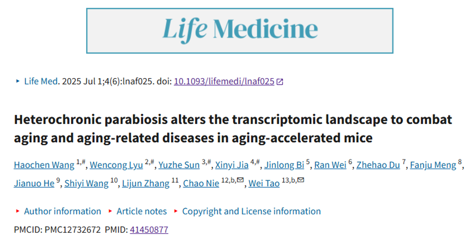 生命科学学院陶伟团队系列研究多维度揭示衰老调控新机制:从机制解析到干预策略