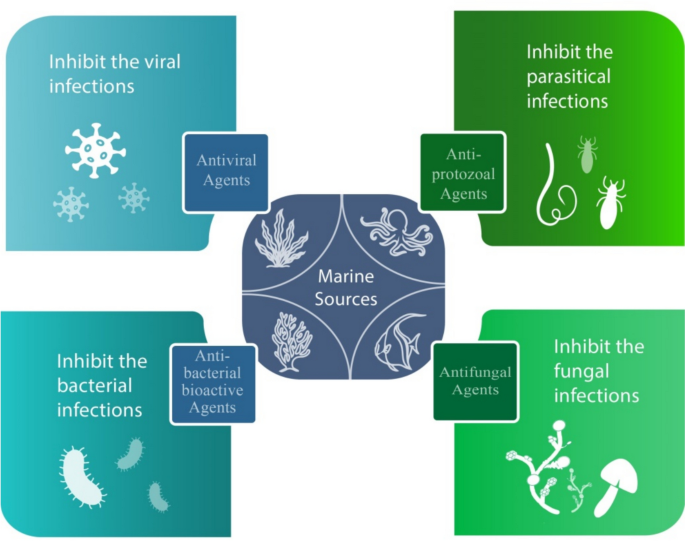 本综述的结果强调了海洋来源生物的显著抗菌潜力,它们是具有抗菌、抗病毒、抗原生动物和抗真菌活性的生物活性化合物的宝贵来源。总体而言,继续探索海洋生物多样性并系统地鉴定海洋来源化合物可能有助于未来开发新型且有效的抗菌剂。