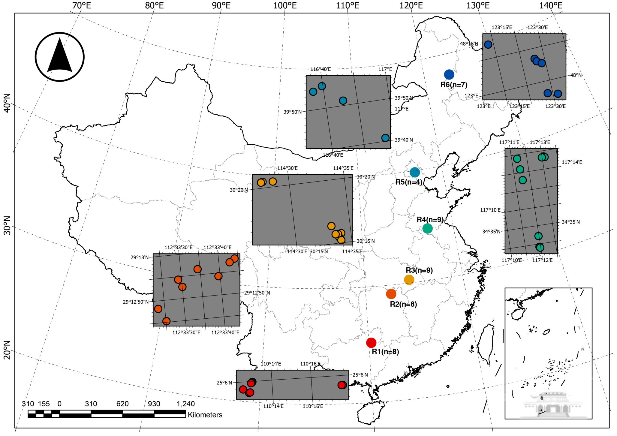 纬度样带调查样方分布和灭菌实验设计图