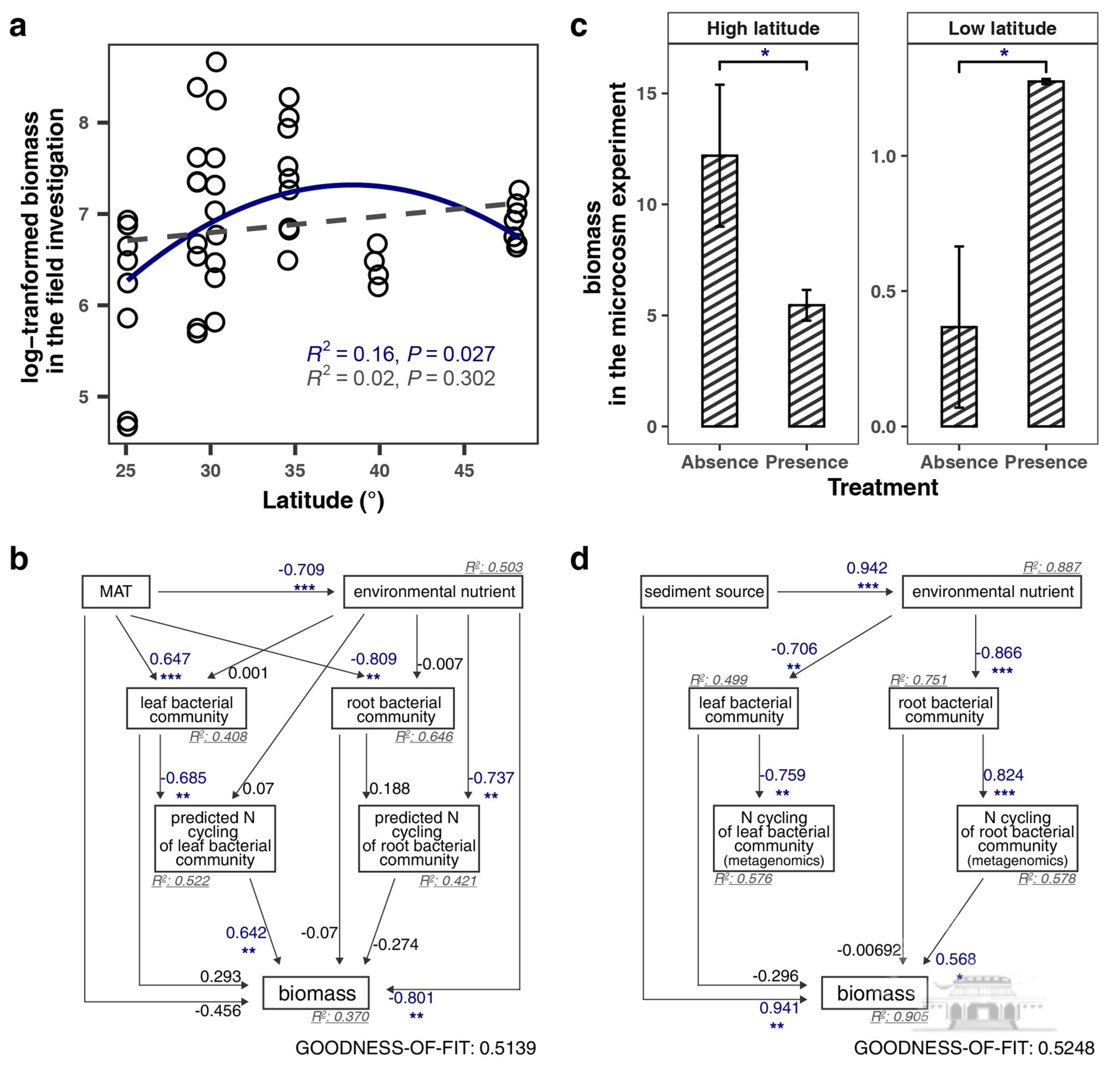 【武汉大学新闻网】梁子湖国家站揭示微生物驱动沉水植物生产力的纬度格局及机制