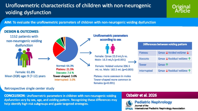 《Pediatric Nephrology》:Uroflowmetric characteristics of children with non-neurogenic voiding dysfunction: a large single-center cohort