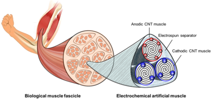 用于人工肌肉束电化学与机械平衡的不对称碳纳米管纱线