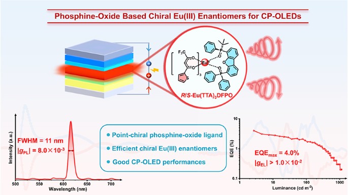 基于手性膦氧化物配体的Eu(III)对映异构体的圆偏振光致发光和电致发光现象