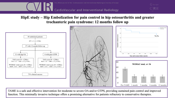 《CardioVascular and Interventional Radiology》:HipE Study—Hip Embolization for Pain Control in Hip Osteoarthritis and Greater Trochanteric Pain Syndrome: 12 Months Follow-Up